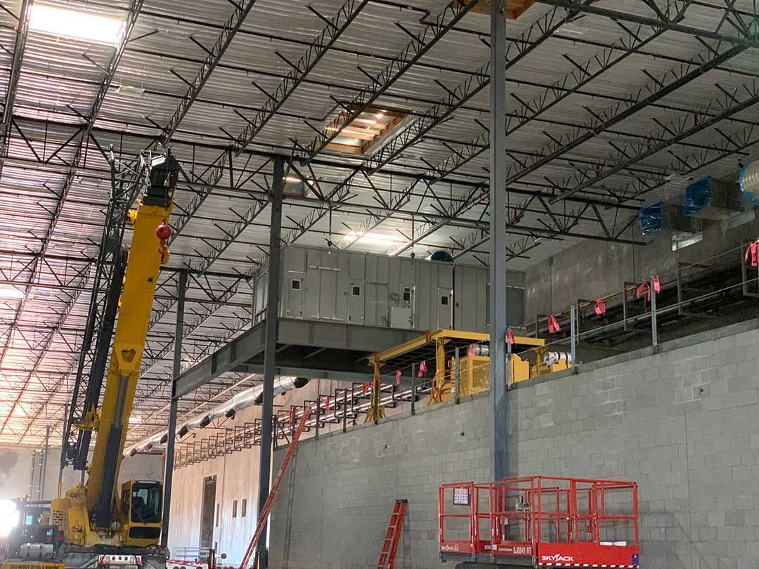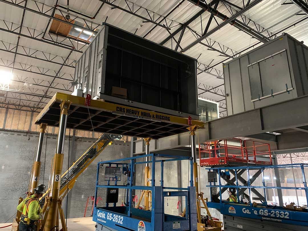 CRS was contracted to set multiple air handler units (AHU) on this project. The units needed to be set at different levels within the facility, from on a 17-foot-high concrete mezzanine up to steel beams at a height of 31 feet. These AHU sections weighed between 10,000 – 20,000 lbs. each and had to be placed tightly together and leveled to perform properly. CRS assembled a dynamic crew, and utilizing just the right equipment, was able to perform this project in a safe and timely manner for the customer.